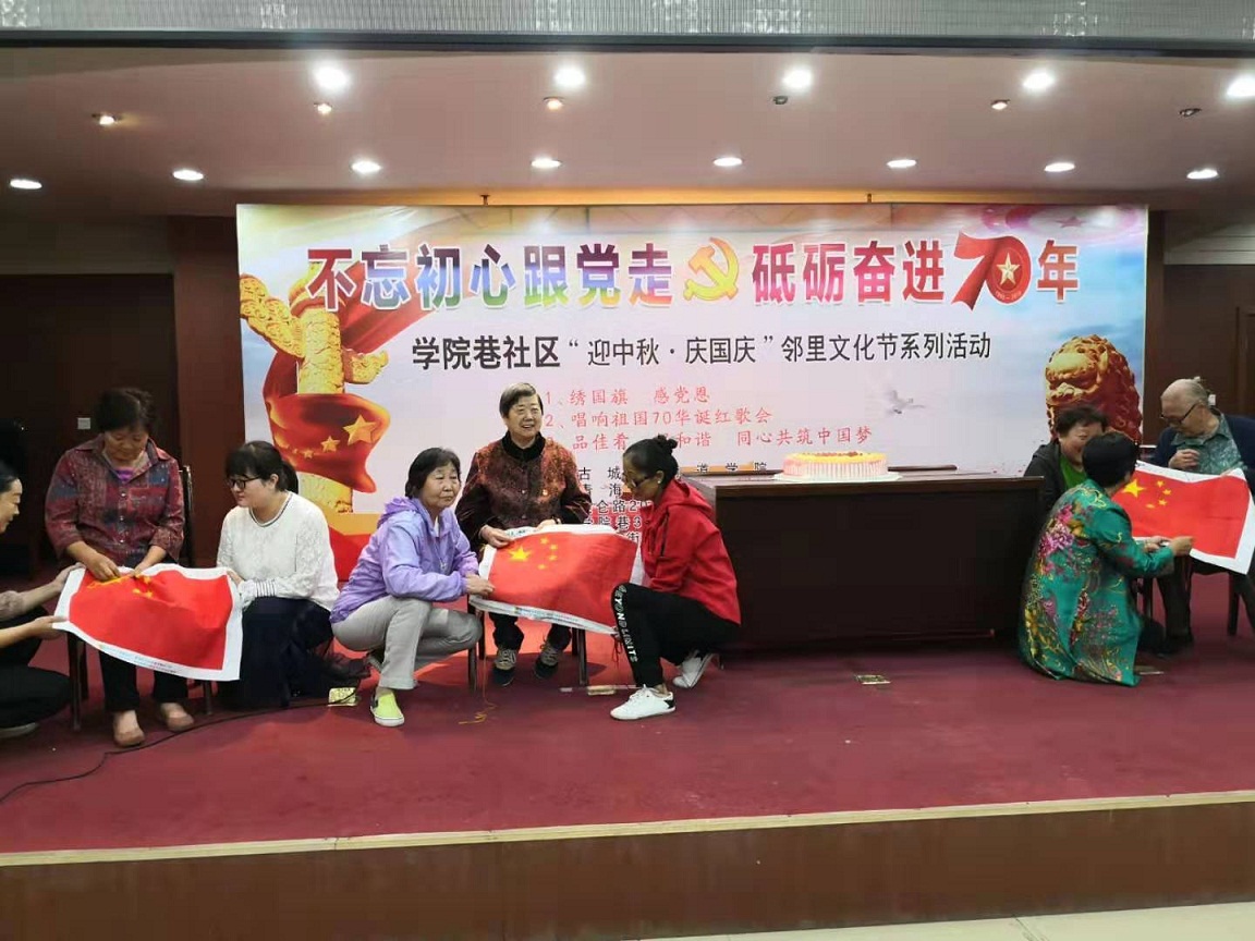 活动中,信息中心党员与5个社区党支部同心向党绣国旗,为社区居民献上精心准备的独唱《今天是你的生日我的中国》、配乐诗朗诵《我的祖国》,与社区居民同心同行共同唱响爱国情怀。百家宴活动中,送上2个精美菜品,与居民一起品美食,话家常,共同庆祝节日的到来,并祝辖区各族居民群众中秋快乐,幸福安康。