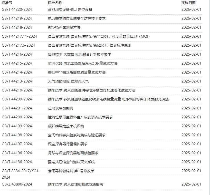 2025年2月即将实施标准公告