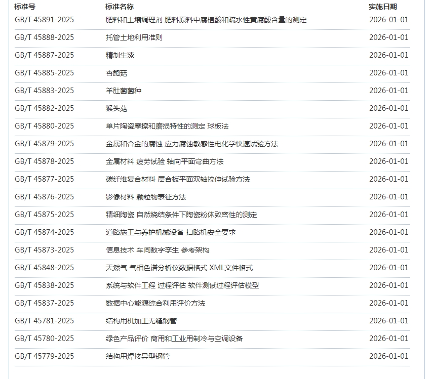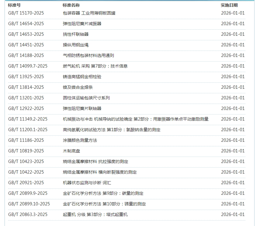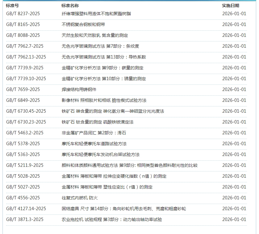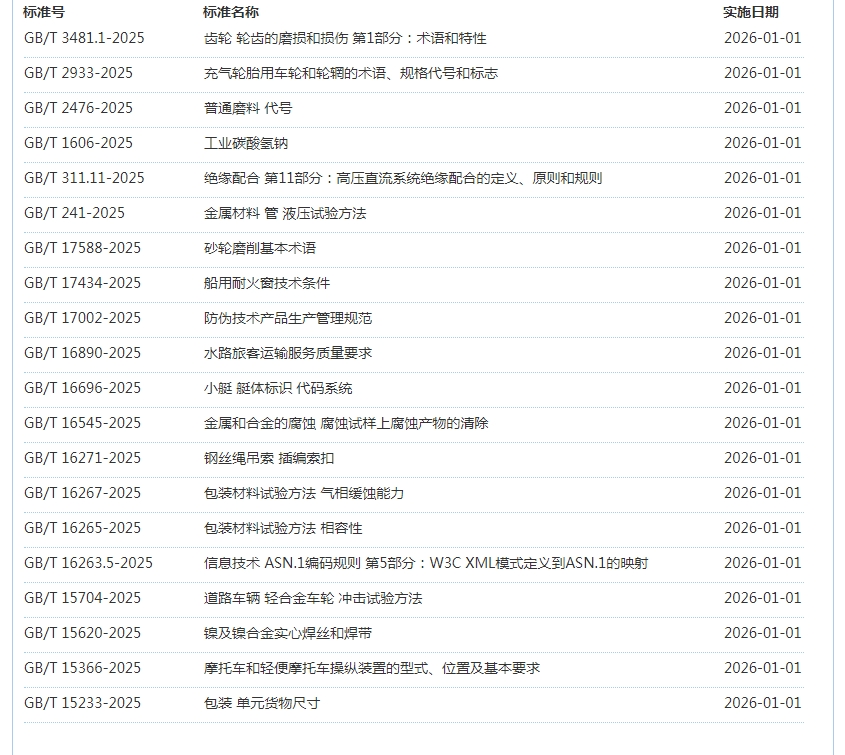 2025年12月即将实施标准公告