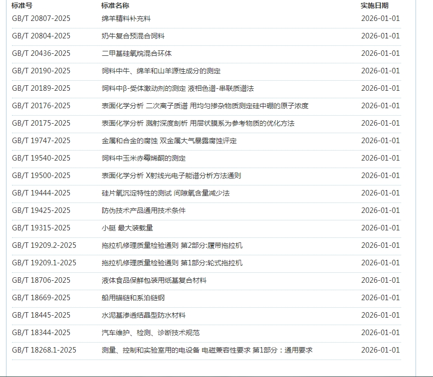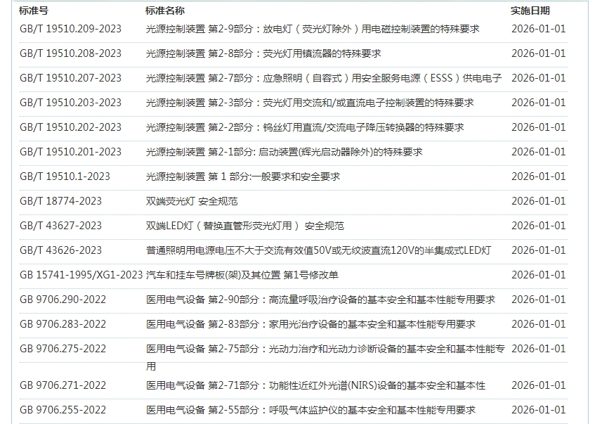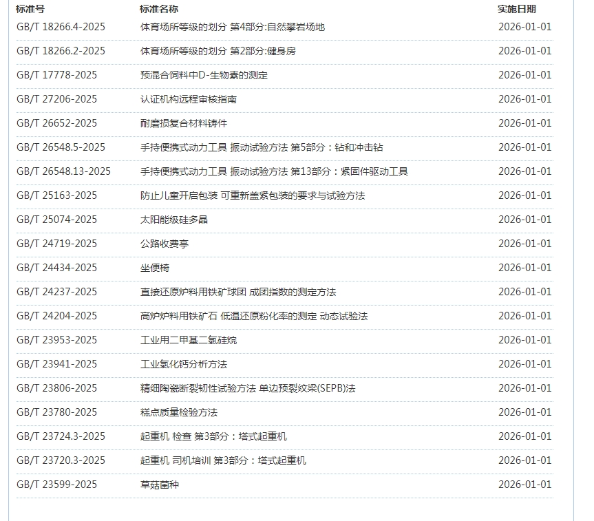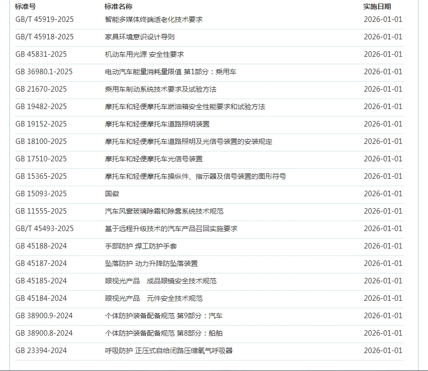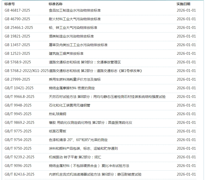 2026年1月即将实施标准公告