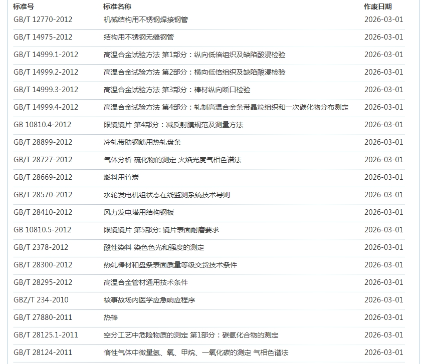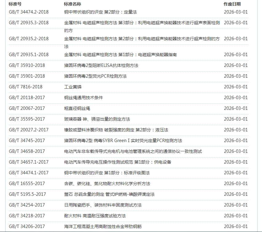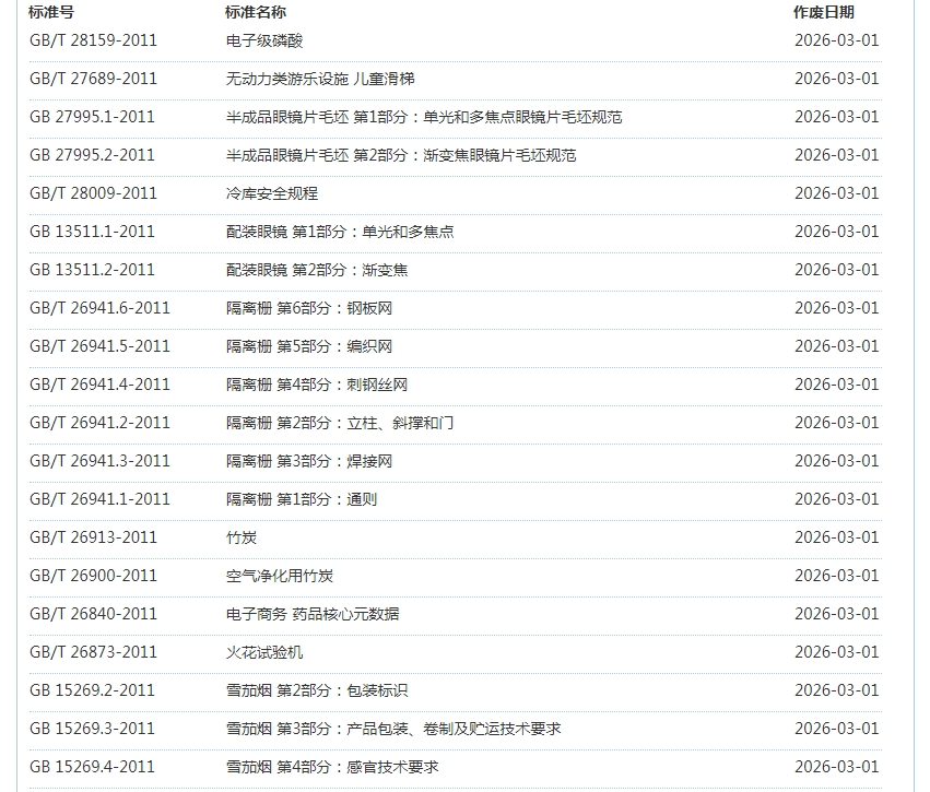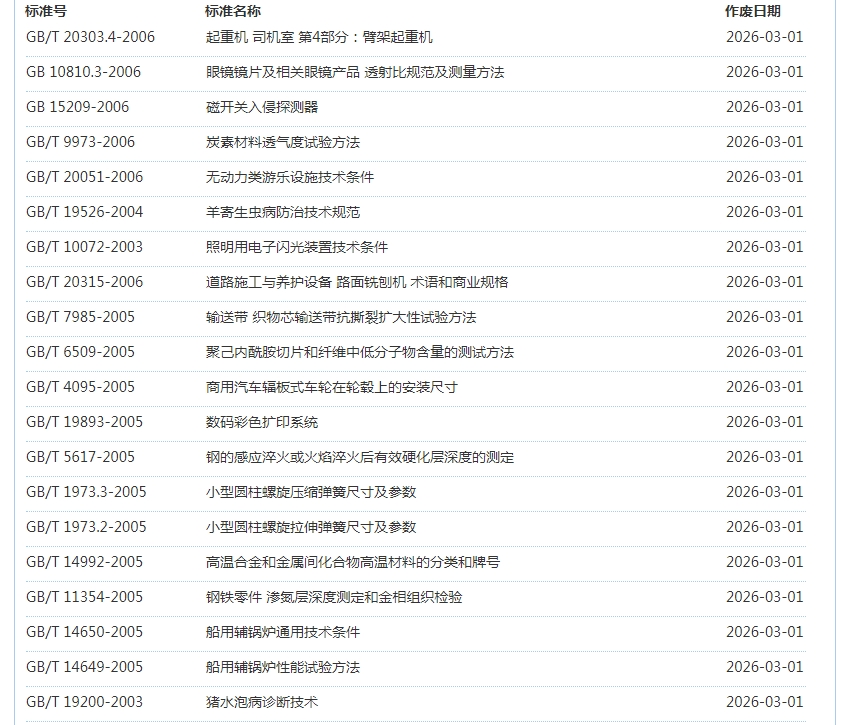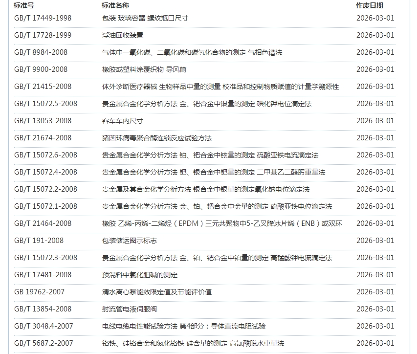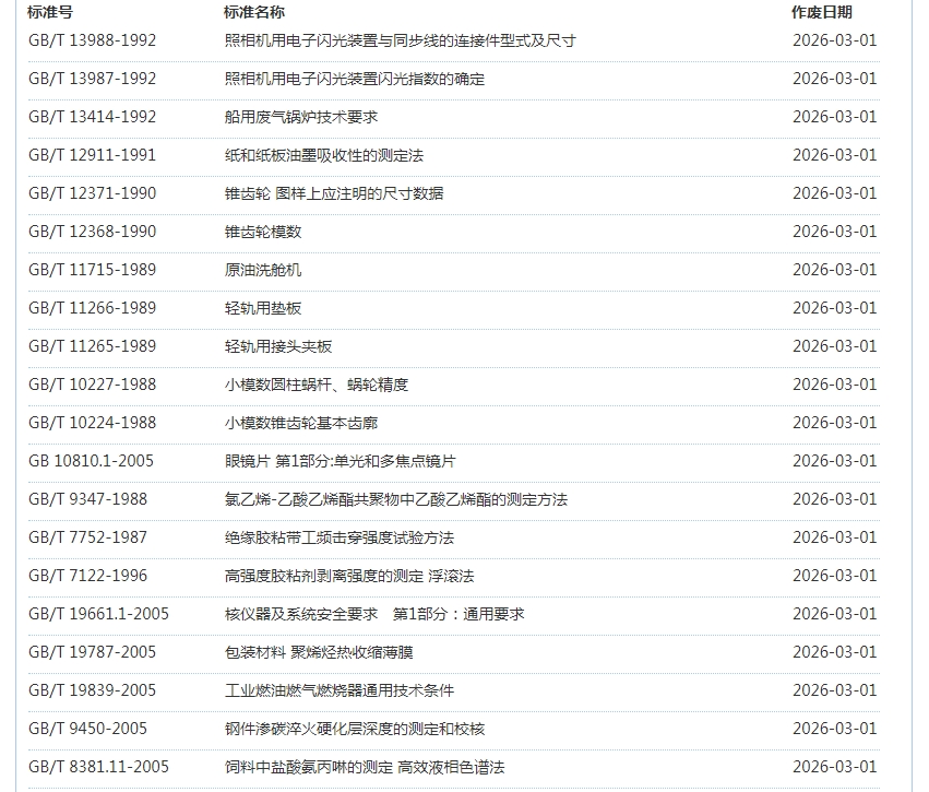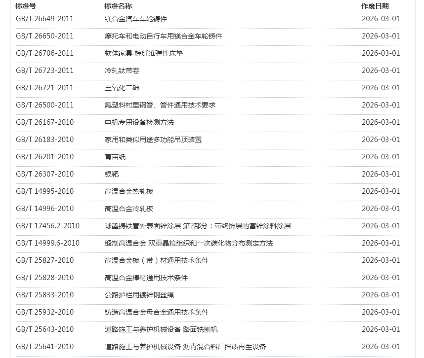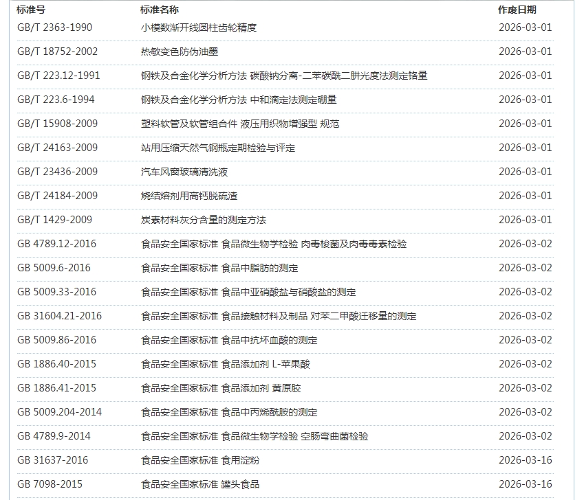 2026年3月即将作废标准公告
