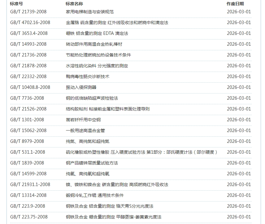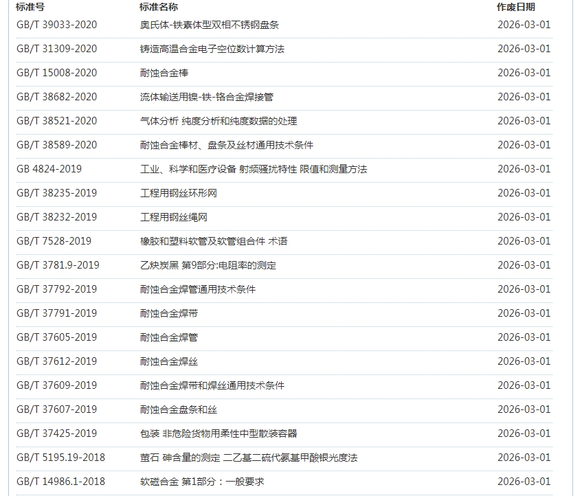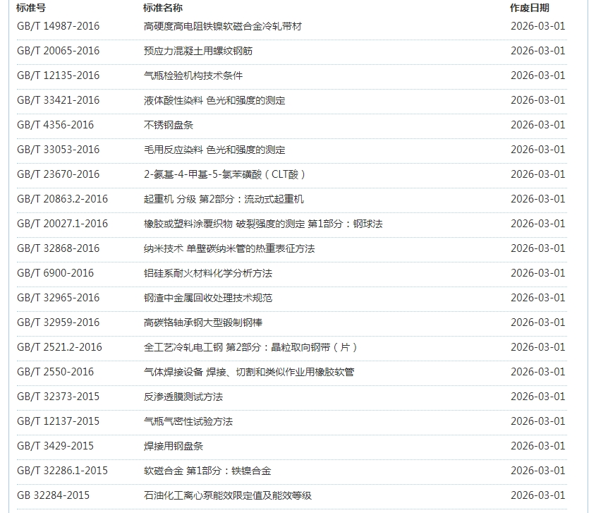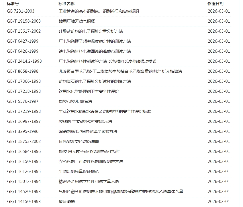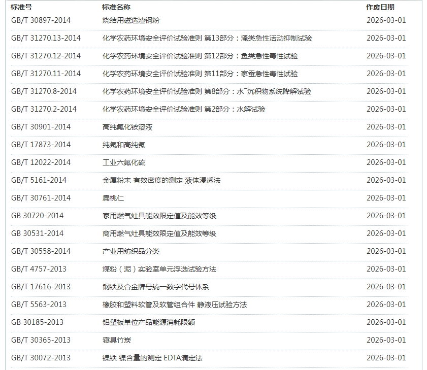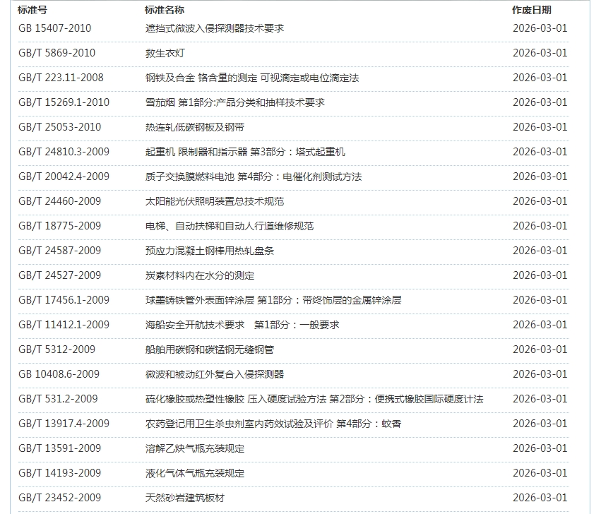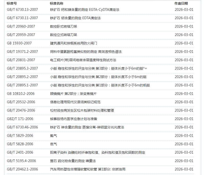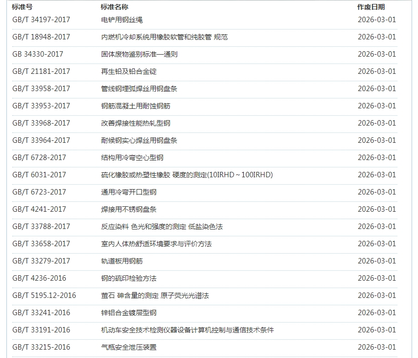 2026年3月即将作废标准公告